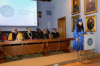 | U ime diplomiranih studenata, nazočnima se obratila i zahvalila studentica Kristina Zec s Prirodoslovno-matematičkog fakulteta Sveučilišta u Zagrebu. | ![]() |